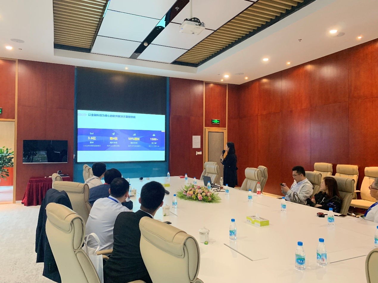 展會期間,金融機構相關領導對凌志軟件等重點企業進行了走訪調研。凌志軟件副總裁龐軍女士陪同參觀凌志大廈并作了匯報。龐總向到訪領導介紹了公司自成立以來的發展歷程、取得成就以及未來發展前景,重點介紹了凌志軟件以金融科技為導向的創新產品及解決方案。