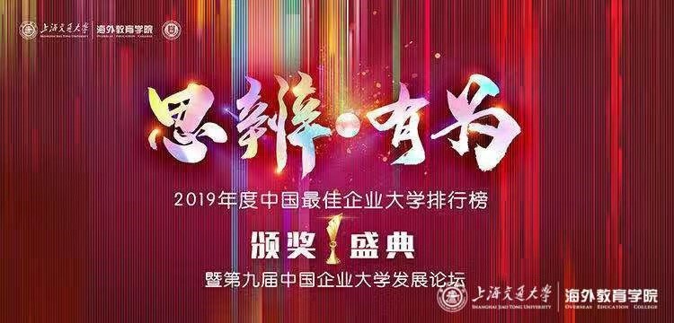 近日,由上海交通大學海外教育學院主辦,以“思辨.有為”為主題的2019年度中國最佳企業大學排行榜頒獎盛典暨第九屆中國企業大學發展論壇在上海隆重舉辦。該活動得到了上海交通大學及學院各級領導的關心和重視,上海交通大學黨委常委、黨委宣傳部部長胡昊作為2019年度最具影響力企業大學獎項的頒獎嘉賓出席活動,學院領導、一流企業大學校長、專家學者等匯聚一堂,共同見證2019年度中國最佳企業大學頒獎盛典。