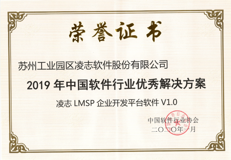 會上,凌志軟件榮獲“2019年中國軟件行業最具影響力企業”獎,凌志LMSP企業開發平臺軟件榮獲“2019年中國軟件行業優秀解決方案”獎。
