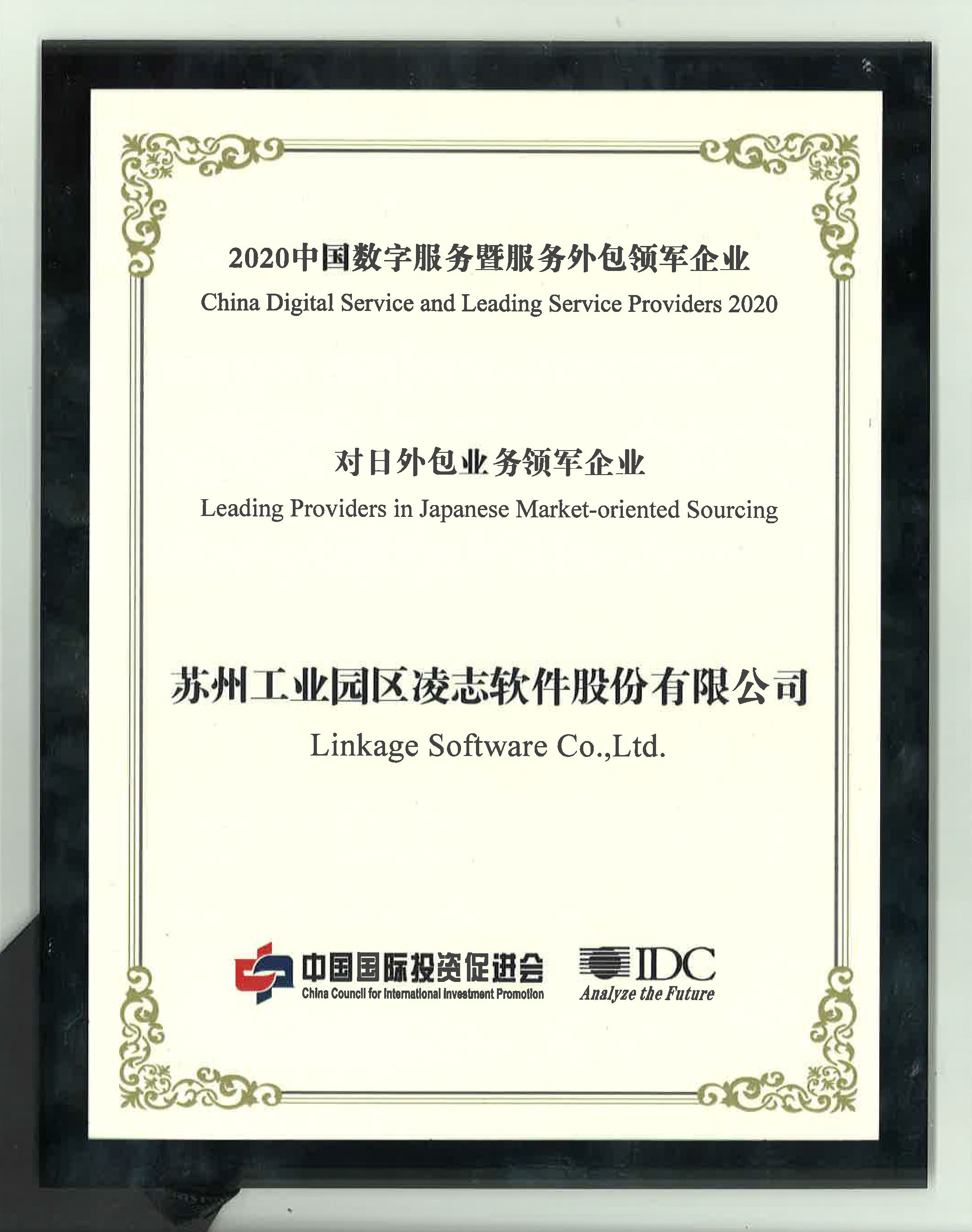 10月19日,第十一屆中國國際服務外包交易博覽會在杭州盛大召開,大會以“推進萬物互聯,開拓數字化外包,構建智慧型社會”為主題,各地方政府主管部門領導、業內專家、行業協會、咨詢機構以及國內外知名企業代表約150人出席大會。凌志軟件參加專題會議“2020中國數字服務暨服務外包領軍企業推介會”,并榮獲“對日外包業務領軍企業”和“百強企業”兩項殊榮。