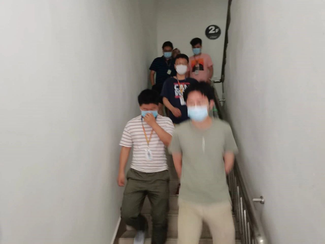 下午一點,消防演練正式開始,火災警報鈴聲響起,全體員工按照指定的疏散線路,通過消防樓梯有序地進行緊急疏散,并第一時間撤離到安全地帶——公司一樓大廳。