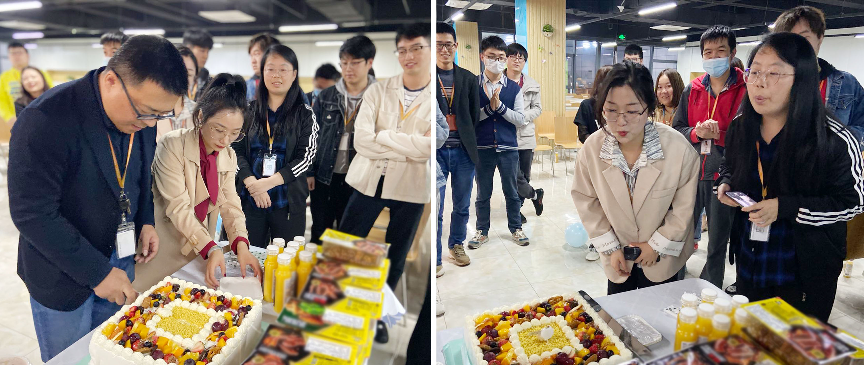 現場歡聲笑語此起彼伏,大家齊唱生日歌,壽星們許愿、吹蠟燭……
