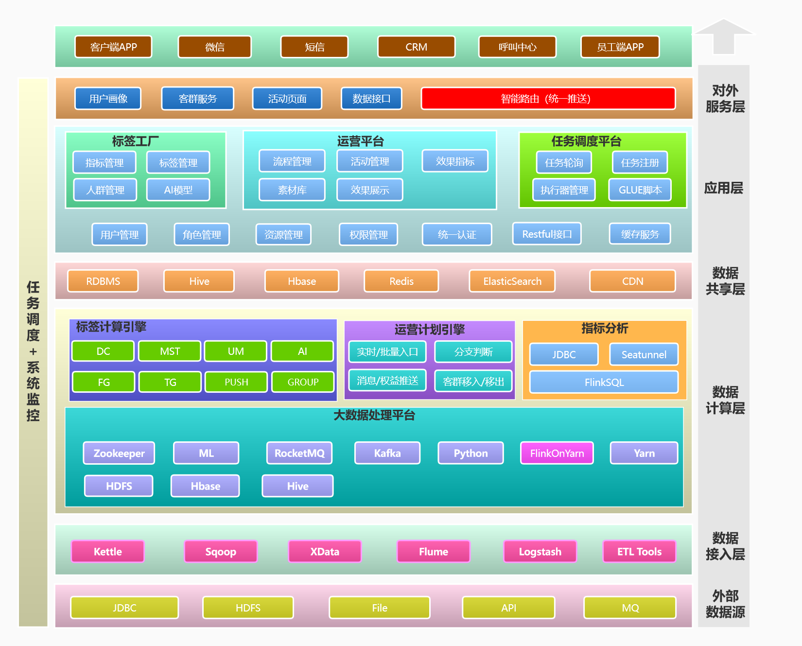 涵蓋客戶生命周期旅程、客戶行為觸發(fā)旅程、產(chǎn)品生命周期旅程、客戶營銷活動(dòng)旅程、適當(dāng)性管理服務(wù)流程五大類用戶策略,幾百個(gè)細(xì)分場景策略。