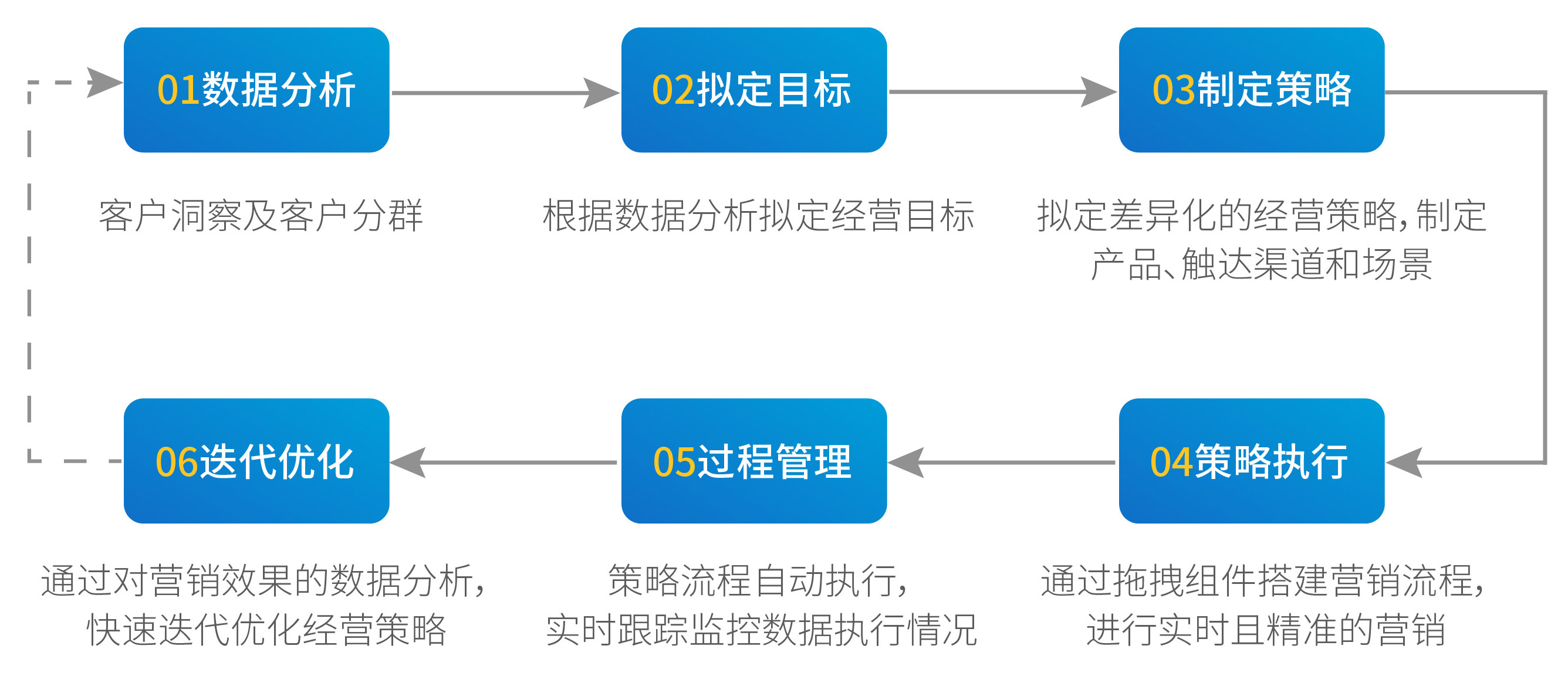 從識別客戶的相關標簽和行為數據到對客戶的畫像分群,針對客群制定個性化的服務策略、配置渠道與內容,在客戶關鍵場景下進行線上或線下的運營觸達。