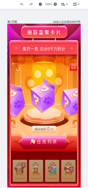 通過拖拉拽的方式放置抽盲盒組件及領獎等組件