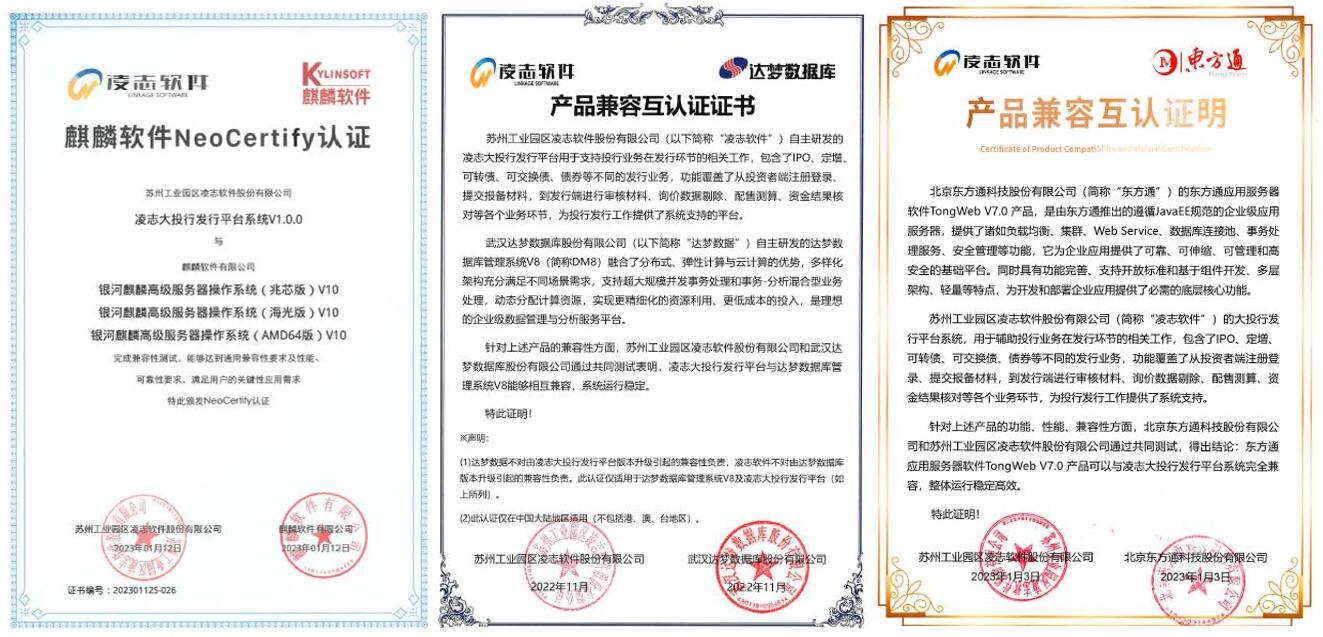 此前,凌志軟件投行業務管理系統、凌志軟件投行底稿管理系統均已通過麒麟軟件以及達夢數據庫的國產信創兼容性認證,標志著凌志軟件投行業務系列產品對我國信創生態建設的支持不斷加強。