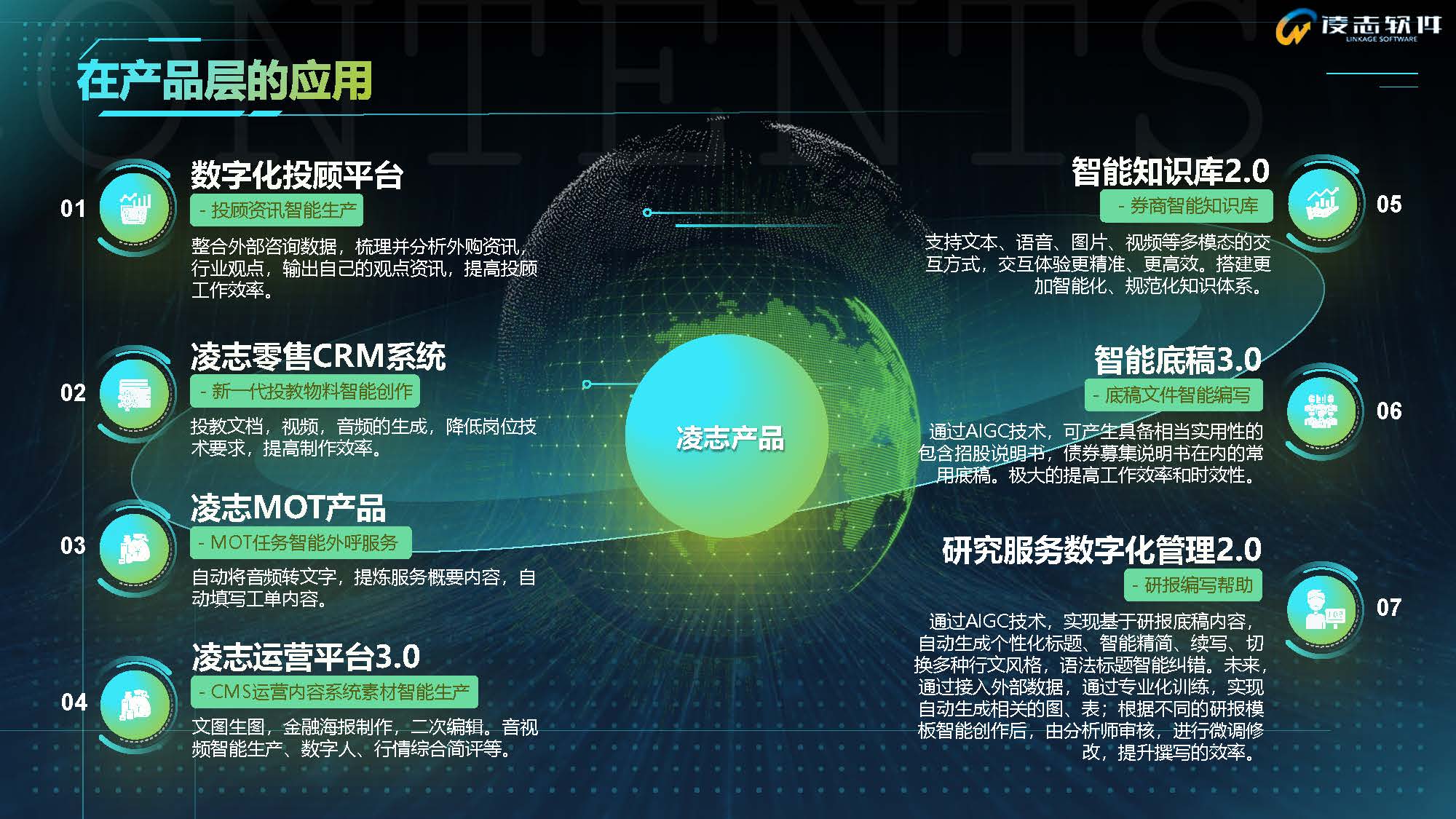 周穎在會(huì)上分享,凌志軟件利用海外市場(chǎng)優(yōu)勢(shì),通過(guò)對(duì)ChatGPT的調(diào)用及驗(yàn)證,結(jié)合在金融領(lǐng)域積累的特定領(lǐng)域數(shù)據(jù),并對(duì)數(shù)據(jù)進(jìn)行二次訓(xùn)練及優(yōu)化,探索AIGC在金融領(lǐng)域的應(yīng)用。同時(shí),他通過(guò)視頻演示,向與會(huì)者展示了公司在AIGC的布局方向:
