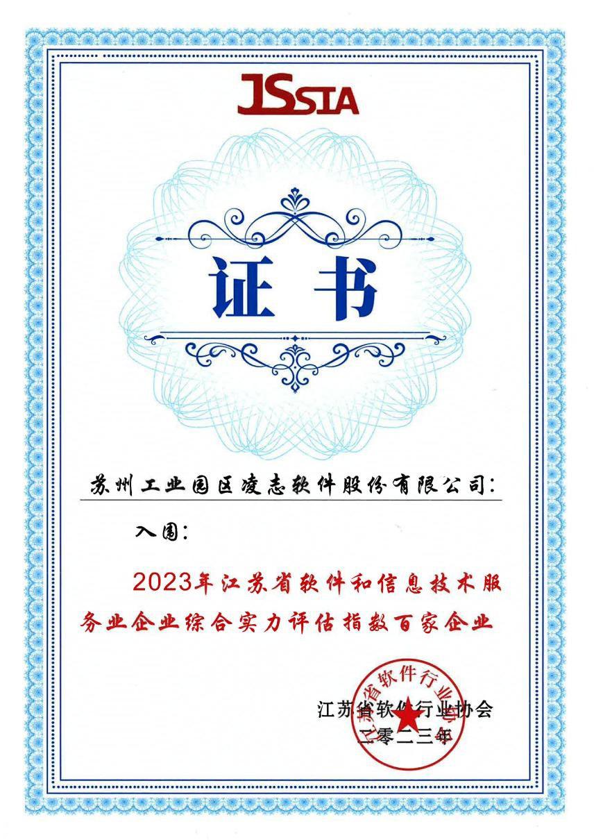 日前,江蘇省軟件行業協會正式公布“2023年江蘇省軟件和信息技術服務業企業綜合實力評估指數百家企業”名單,凌志軟件連續三年榮譽上榜!