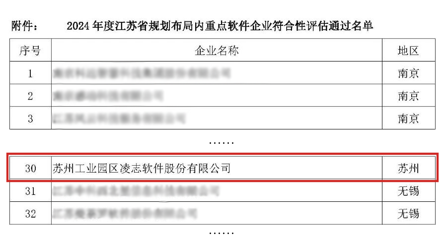 凌志軟件成功入選“江蘇省規劃布局內重點軟件企業”